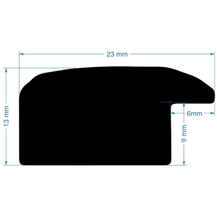A 23mm wide cushion profile, with a total depth of 13mm, with a navy blue lacquer coating to create a gloss finish.