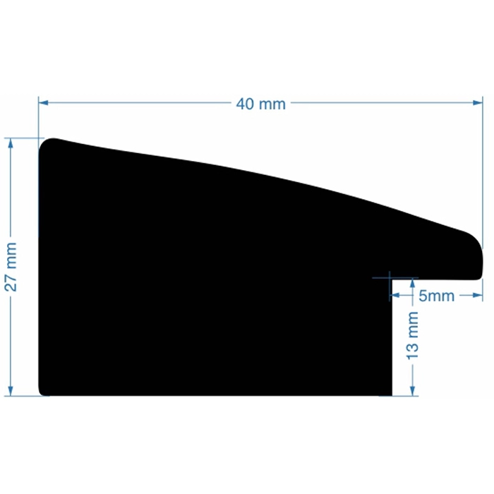 A 40mm wide flat profile, with a total depth of 27mm. Finished in brushed pewter foil.