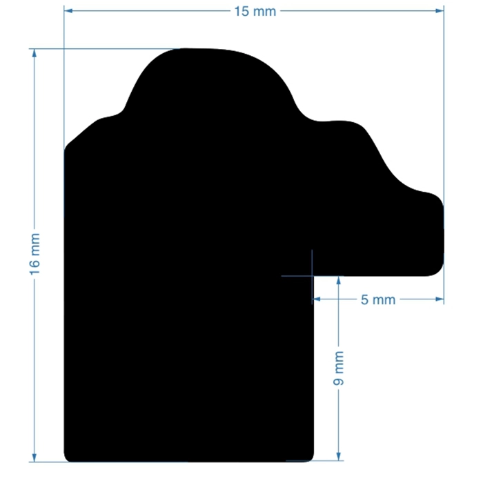 A 16mm wide hockey profile, with a total depth of 17mm, that is finished with a blue washed stain.