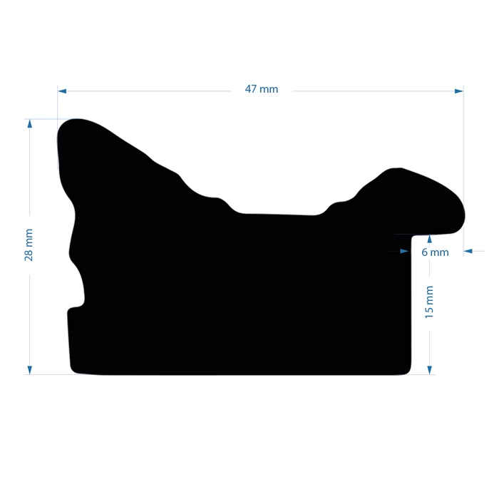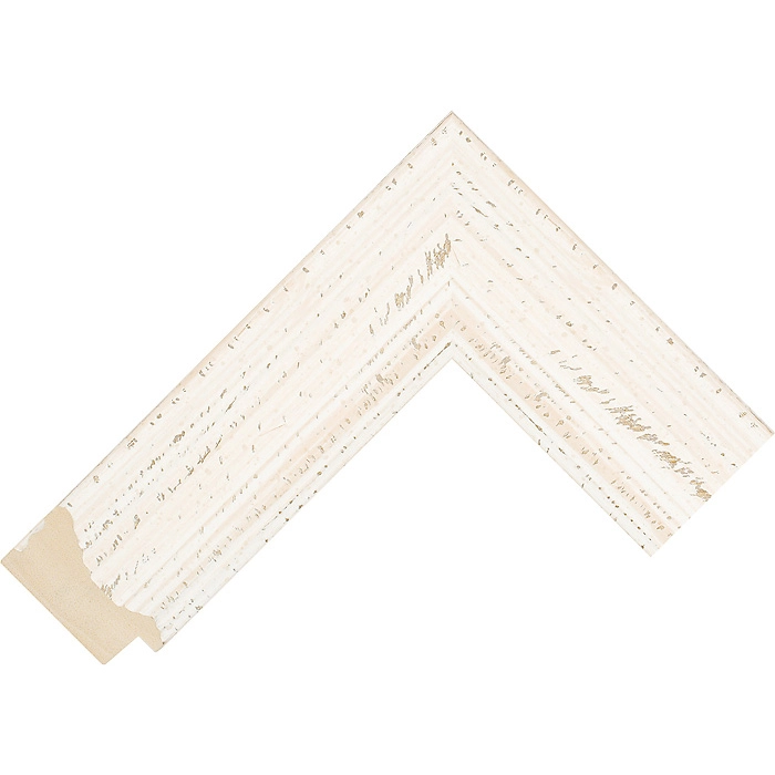 A 47mm wide scoop profile with a total depth of 28mm. Distressed shabby chic style finish in a white paint.