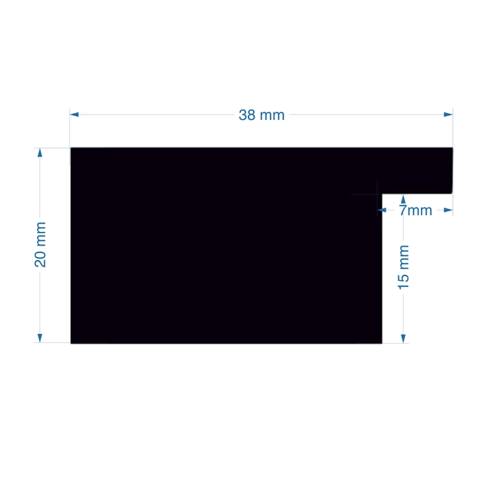A 38mm wide deep rebate flat profile, with a total depth of 20mm, finished in a Oak Veneer.